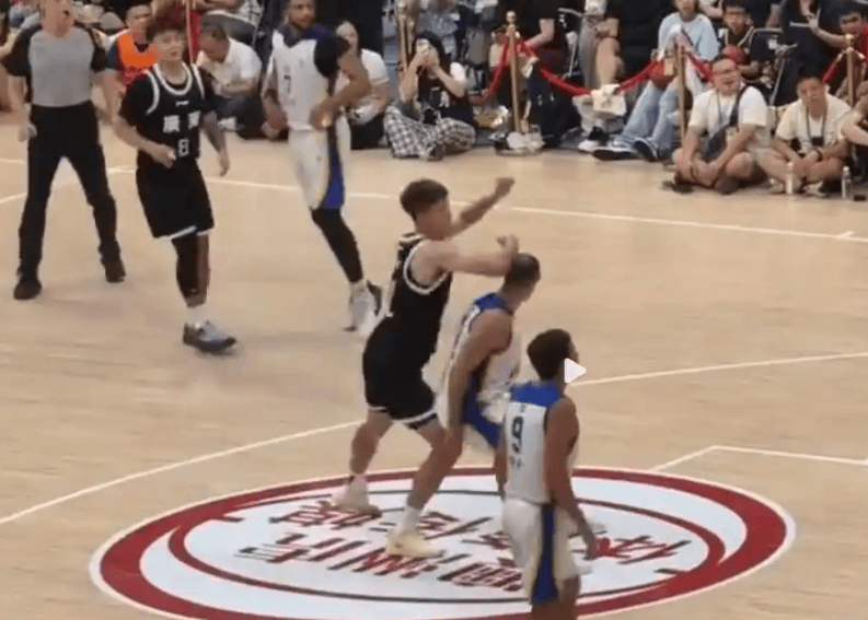 在比赛中,对手14号球员对赵睿防守动作过大,周鹏为队友出头,挥拳直接干翻了对手。但是非常奇怪的是,裁判没有任何表示。也许在裁判看来,这很正常,广东队打球如果很文雅,反而不正常。